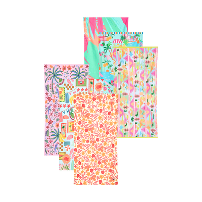 Schnelltrocknende Strandtücher aus DryQ™-Gewebe, das 3x schneller trocknet als Baumwolle und Sand mühelos abweist. Erhältlich in über 40 lebhaften Designs und drei Größen (Medium, Large, Extra Large). Jedes Handtuch lässt sich unglaublich klein in seinem Beutel verstauen. Hergestellt aus 100 % recycelten Materialien. Perfekt für Strandurlaub, Pooltage und Outdoor-Abenteuer.