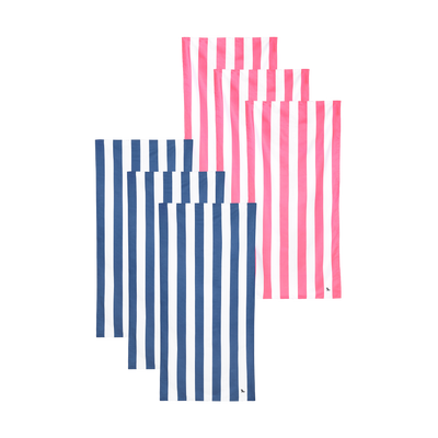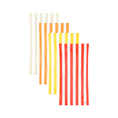 Strandtuch-Sets in passenden Designs, perfekt für Familien und Freunde. Jedes Set enthält unsere preisgekrönten DryQ™ schnelltrocknenden Handtücher, die Sand abweisen und 3x schneller trocknen als Baumwolle. Sparen Sie Geld mit unseren Sets und stellen Sie gleichzeitig sicher, dass jeder sein eigenes leuchtendes Handtuch mit passender Tragetasche hat. Hergestellt aus 100 % recycelten Materialien.