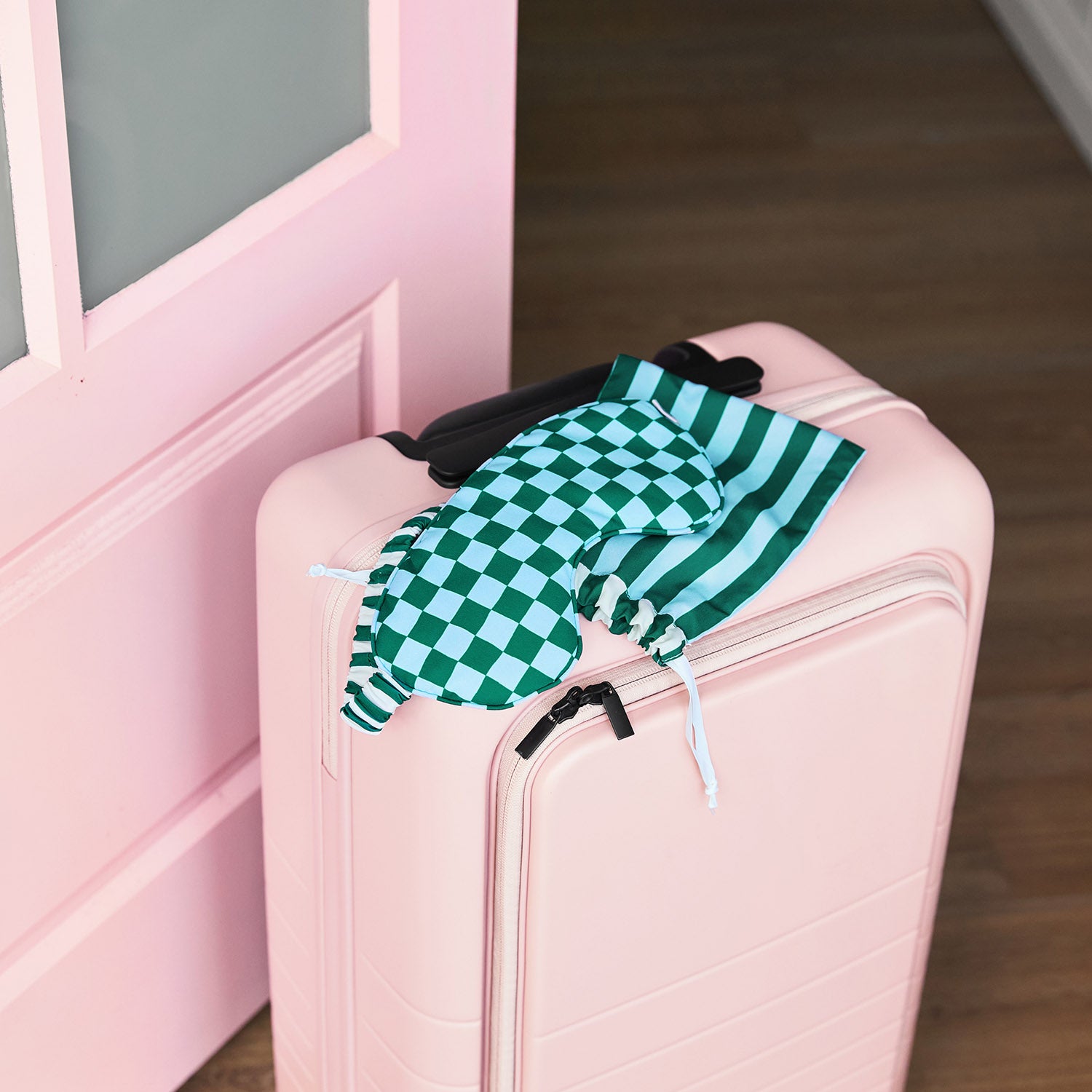 Made from recycled materials and designed with comfort in mind, it feels soft against your skin and stays lightweight on your face. The flexible strap helps it sit comfortably without digging in, while the compact pouch makes it easy to pack up for travel.