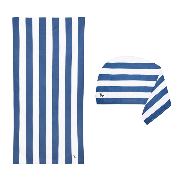 Be matching from head to towel with this perfect pairing - a quick dry Beach Towel & an extra absorbent Hair Wrap designed to keep your locks extra luscious