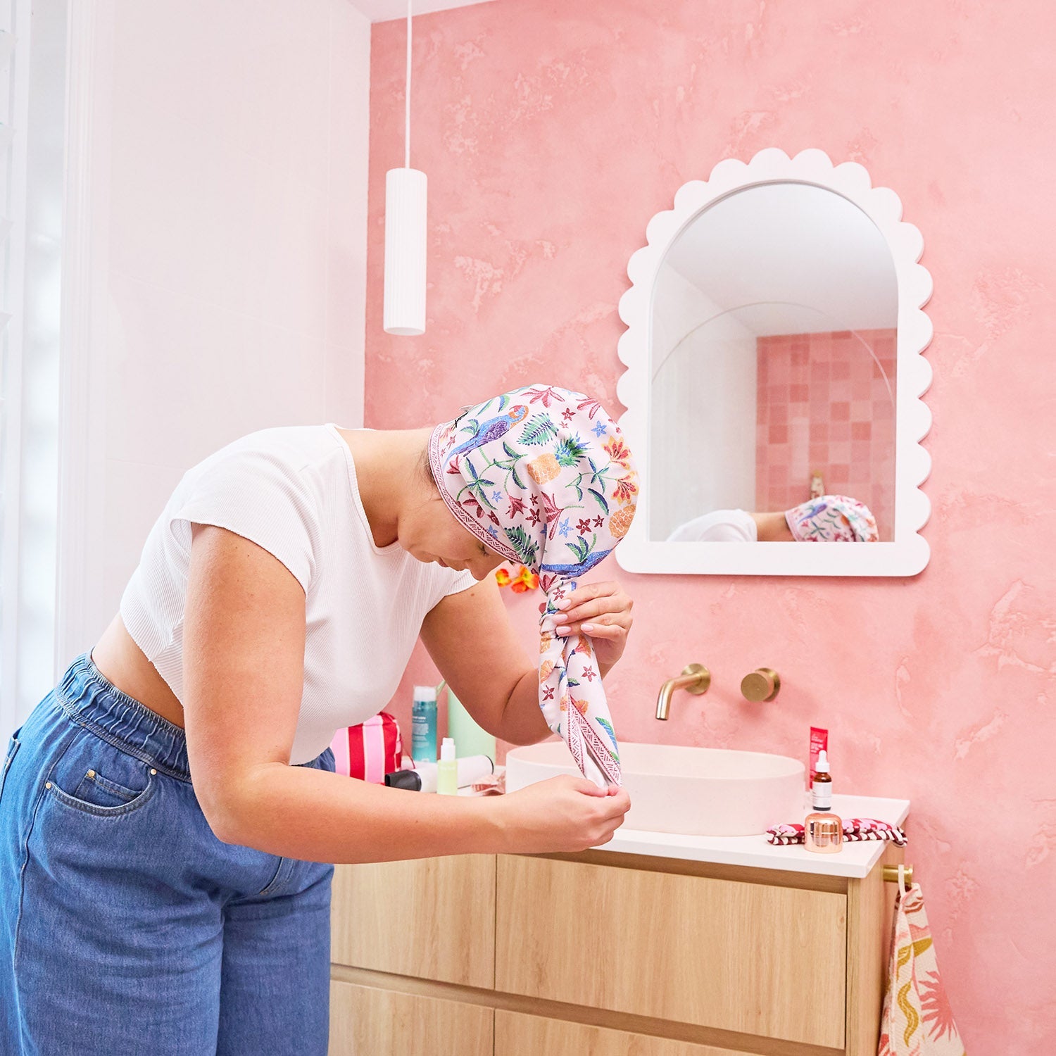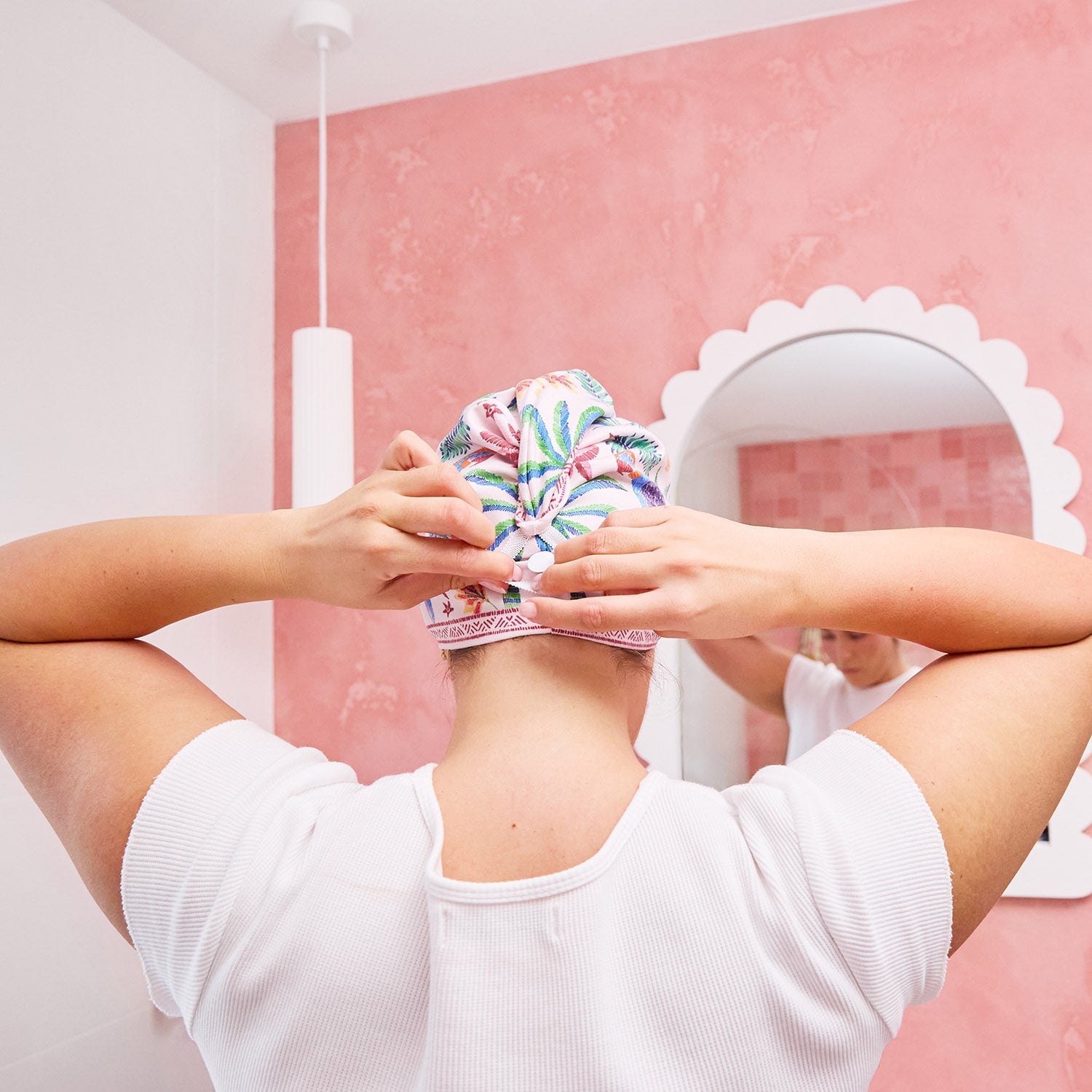 Fabriquée à partir de notre tissu recyclé DryQ™ de première qualité, elle est légère (fini les douleurs au cou), super absorbante et douce pour les cheveux. Le design enveloppant et le bouton la maintiennent bien en place, vous permettant de continuer votre routine pendant qu'elle opère sa magie. Le tissu sans boucles réduit les frottements, les frisottis et rend les cheveux plus heureux en général.