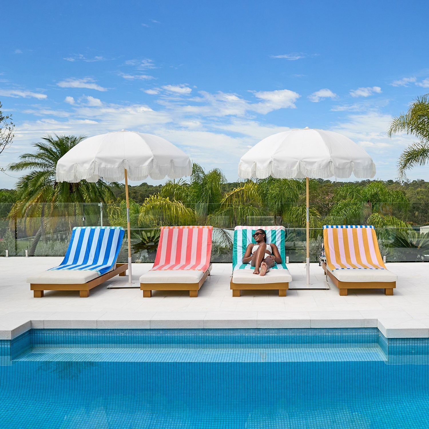 Vibrant colour, quick dry so you no longer have a sopping wet towel around the pool!