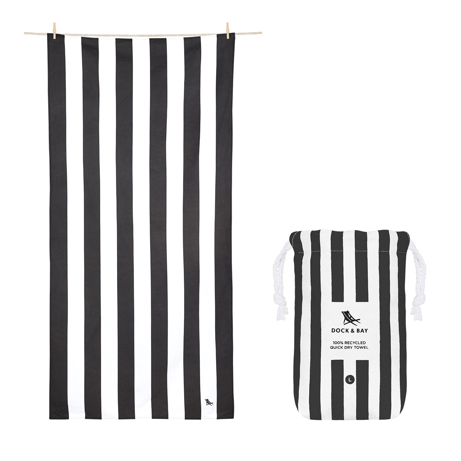 Our towels are made from 100% recycled materials using our unique DryQ™ fabric. Unlike cheaper microfiber towels, ours are super soft on your skin with no scratchy feel. The loop free design means sand won’t stick (even wet sand), and it won’t fray over time. Plus, our iconic pouch lets the towel pack down incredibly small, making it perfect for suitcases or backpacks.