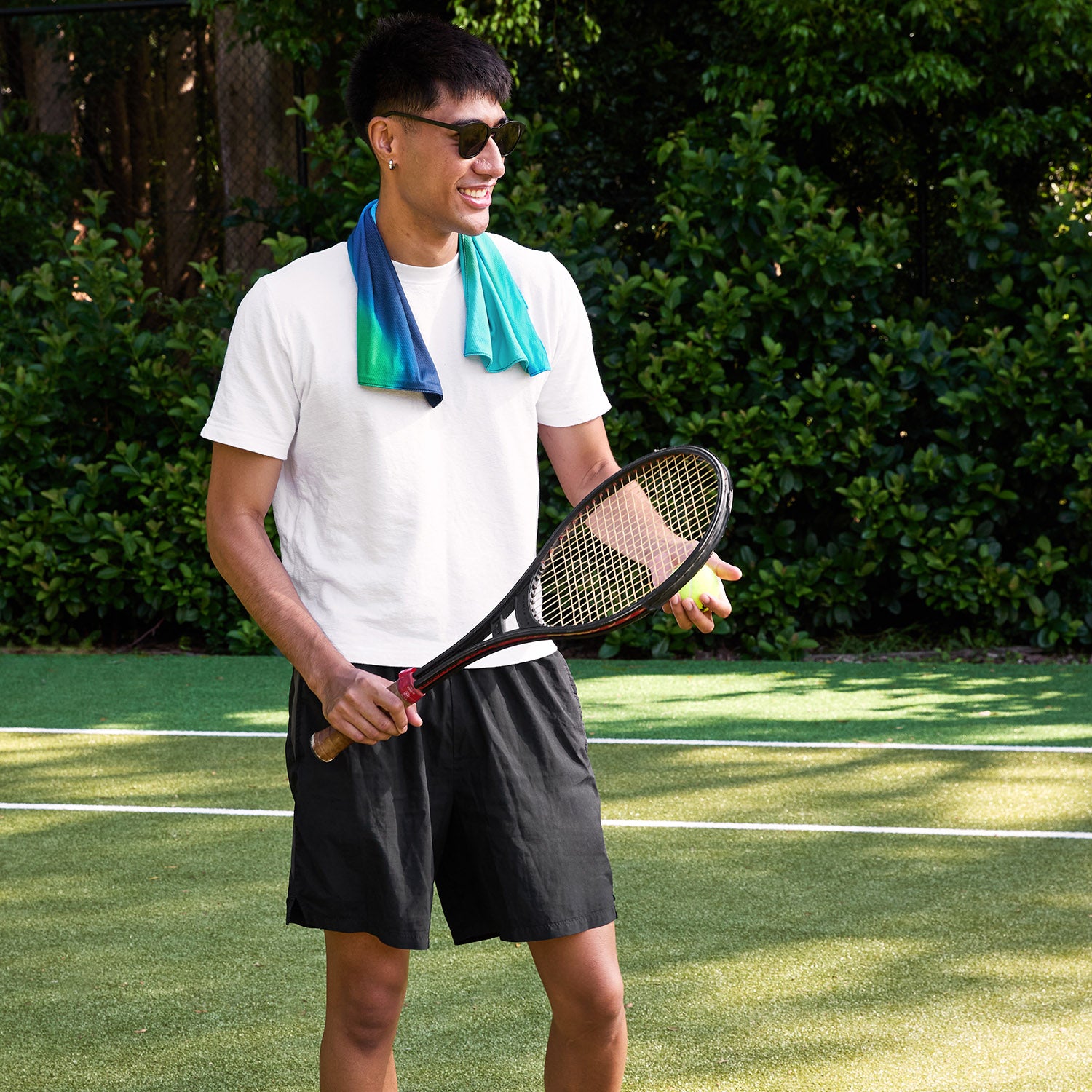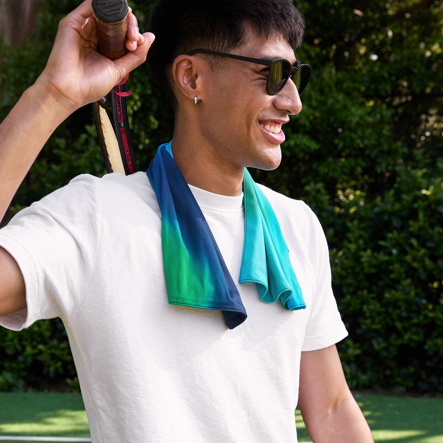 Einfach nass machen, auswringen und ausschlagen, um den Kühleffekt zu aktivieren. Hergestellt aus 100 % recycelten Materialien und so konzipiert, dass es zwischen den Anwendungen schnell trocknet, bleibt es leicht, atmungsaktiv und angenehm auf der Haut.