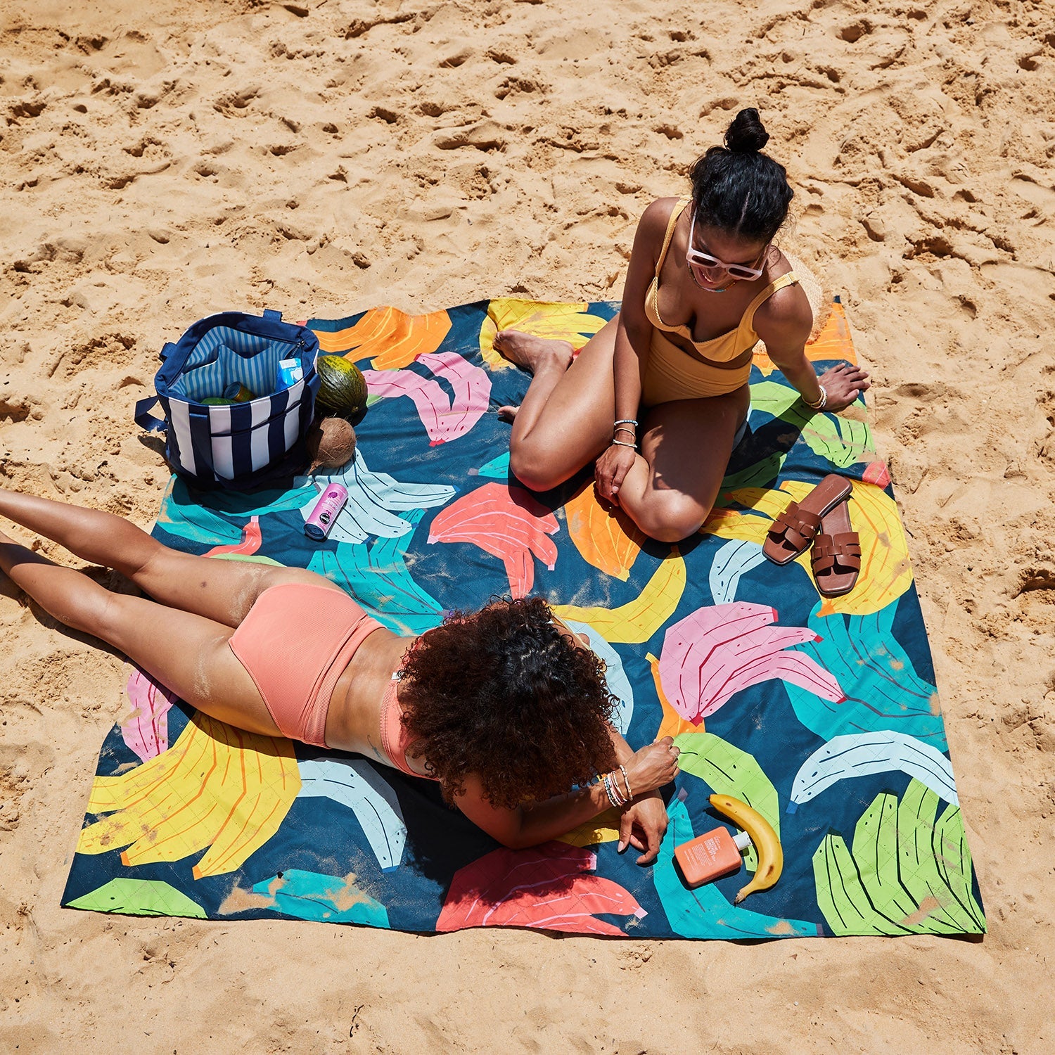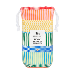 Hergestellt aus 100 % recycelten Materialien und mit einer wasserabweisenden Unterseite versehen, ist sie so konzipiert, dass sie Gras, Sand und feuchten Boden problemlos bewältigt. Weiches Handtuchmaterial (DryQ™-Gewebe) oben zum Sitzen oder Liegen, robust unten für den echten Outdoor-Einsatz. Wenn Sie fertig sind, lässt sie sich ordentlich in ihrer Tragetasche zusammenfalten, bereit für das nächste Abenteuer.
