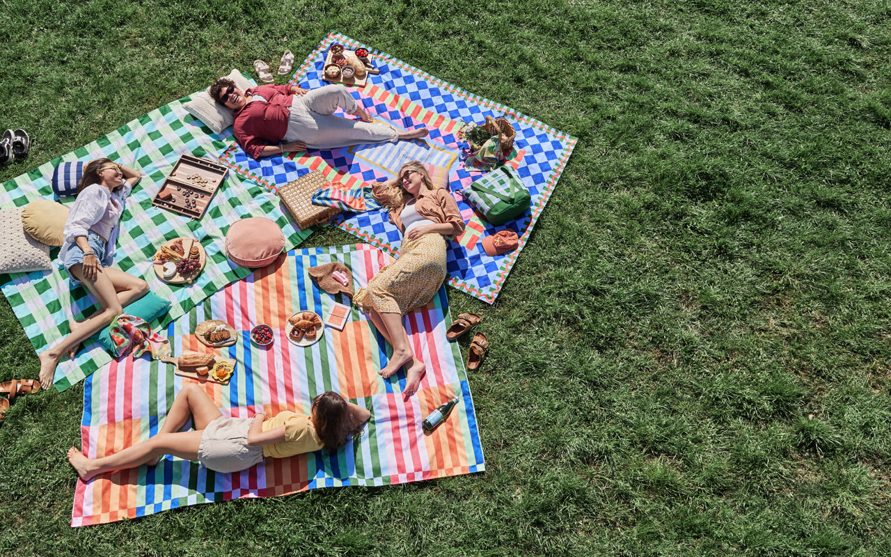 Die Picknickdecke für gelungene Ausflüge. Groß genug, um es sich bequem zu machen, egal ob Sie im Park picknicken, zum Strand fahren oder sich auf einem Festival niederlassen. Mit einem Loch in der Mitte für Ihren Sonnenschirm, um Sie vor der Sonne zu schützen.