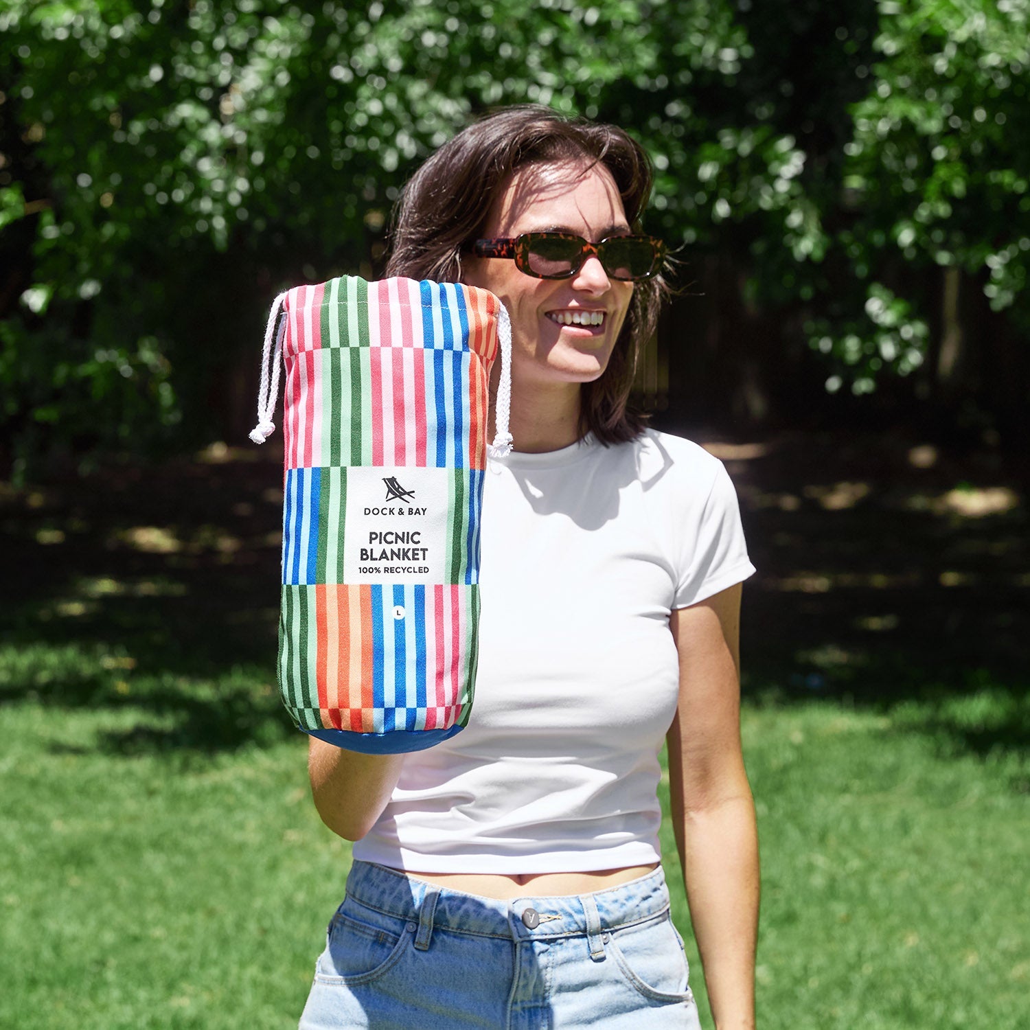 Hergestellt aus 100 % recycelten Materialien und mit einer wasserabweisenden Beschichtung versehen, ist sie mühelos für Gras, Sand und feuchten Boden geeignet. Weiches Frottiermaterial (DryQ™-Gewebe) oben zum Sitzen oder Liegen, robust unten für den echten Outdoor-Einsatz. Wenn Sie fertig sind, lässt sie sich ordentlich in der Tragetasche zusammenfalten, bereit für das nächste Abenteuer.