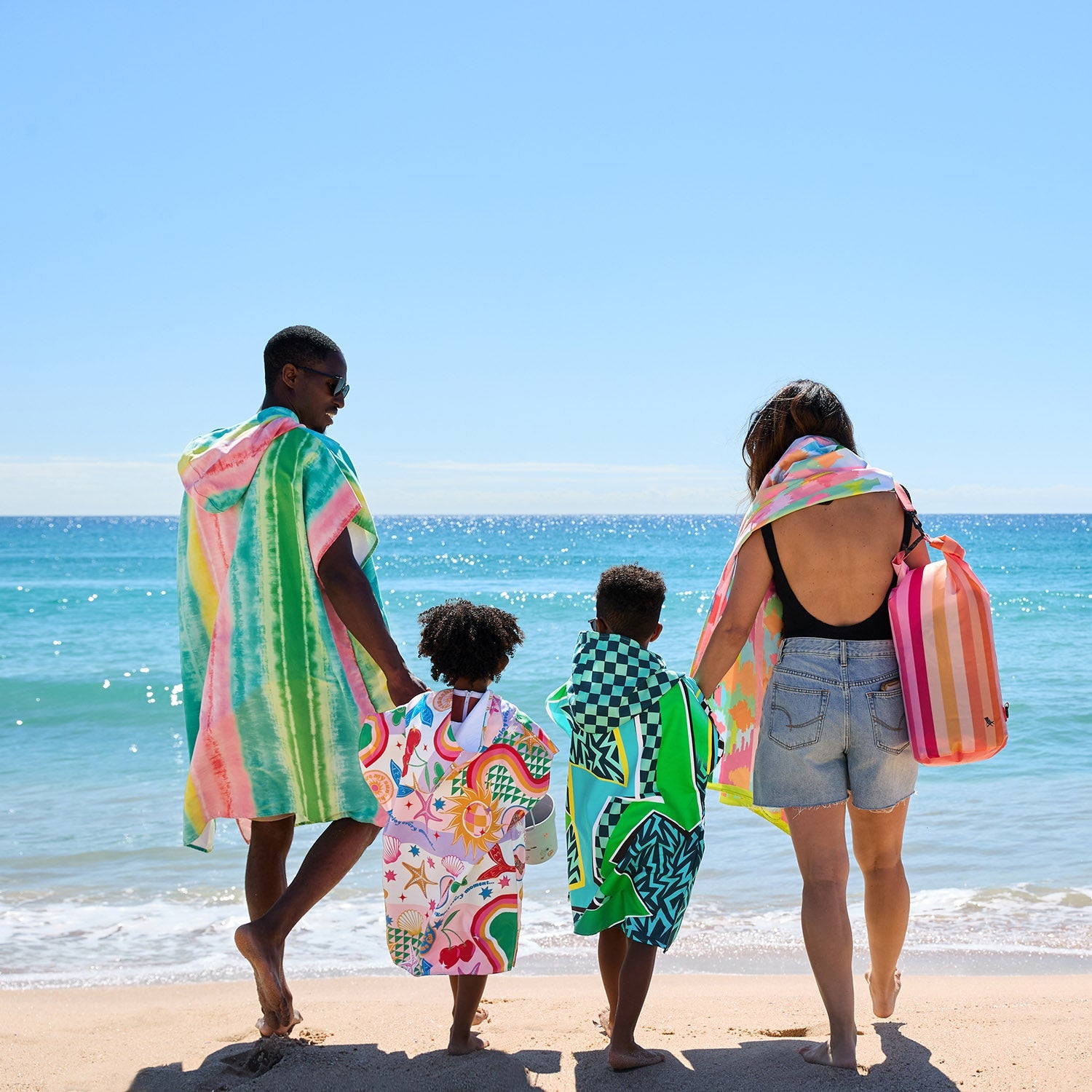 Der Kids Poncho wurde entwickelt, um das Chaos nach dem Schwimmen etwas zu beruhigen. Perfekt für Strandtage, Schwimmunterricht, Urlaub oder zum Planschen im Meer, hält er Kinder warm, bedeckt und bequem, während sie trocknen oder sich umziehen.