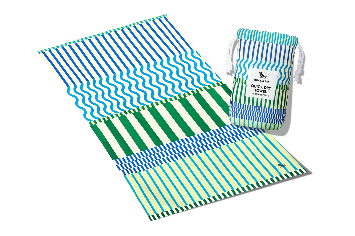 Hergestellt aus unserem hochwertigen DryQ™-Gewebe aus 100 % recycelten Materialien, trocknet es viel schneller als herkömmliche Baumwollhandtücher und nimmt keine feuchten Gerüche an. Sand schüttelt sich direkt ab, es lässt sich klein in seine ikonische Tasche packen und ist im Handumdrehen wieder einsatzbereit.